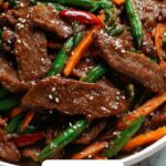 This Beef with Black Bean Sauce recipe features tender flank steak stir-fried with a savory and slightly tangy black bean sauce, complemented by aromatic garlic, ginger, and crisp vegetables. It’s a quick and flavorful Chinese-inspired main course perfect for a satisfying weeknight dinner.