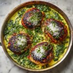 Add the fresh spinach leaves and heavy cream into the skillet. Cook everything gently over medium heat for about 5 minutes, allowing the spinach to wilt softly and the cream to thicken slightly. Then stir in the freshly grated Parmesan cheese and cook for another 2 minutes. The cheese melts into the sauce, creating a beautifully velvety texture bursting with savory goodness.