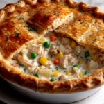 Classic Chicken Pot Pie featuring tender diced chicken and a medley of vegetables in a creamy sauce, all encased in a flaky, golden pie crust. This comforting dish is perfect for a hearty family meal.