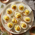 This Classic Deviled Eggs recipe offers a creamy, tangy, and flavorful twist on a beloved appetizer. Perfectly boiled eggs are halved and filled with a smooth mixture of mayonnaise, Dijon mustard, apple cider vinegar, and a hint of hot sauce, then garnished with paprika and fresh herbs for a visually appealing and delicious snack or party starter.