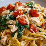 How to Serve Creamy Garlic Tomato Chicken and Spinach Fettuccine Recipe