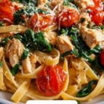 Creamy Garlic Tomato Chicken and Spinach Fettuccine Recipe
