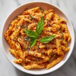 - Serve: Remove from heat, plate the pasta, and garnish with fresh basil leaves. Optionally, sprinkle red pepper flakes for a touch of heat before serving.