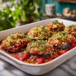 - Bake Uncovered with Topping: Remove foil, sprinkle the topping evenly over the eggplant rolls, and bake uncovered for an additional 15 minutes until the topping is lightly browned. Broil for 2–3 minutes to further brown if desired.