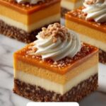 These No Bake Pumpkin Cheesecake Bars are a delightful autumn dessert featuring a buttery graham cracker crust, creamy cheesecake layer, and a spiced pumpkin topping. Perfectly chilled and easy to assemble, they offer a rich yet light treat that captures the classic flavors of pumpkin spice in a convenient bar form.