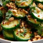 A refreshing and zesty Peanut & Chili Oil Cucumber Salad that combines crisp cucumbers with a spicy, tangy dressing and crunchy roasted peanuts for texture. Perfect as a quick appetizer or side dish, this salad offers a delightful balance of spicy, savory, and slightly sweet flavors in just 10 minutes.