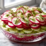 A refreshing and light Radish and Cucumber Salad featuring thinly sliced radishes, crisp English cucumbers, and fresh dill, dressed with a simple lemon vinaigrette. This easy-to-make salad is perfect as a quick side dish or a healthy snack, combining crunchy textures and bright flavors.