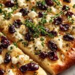 This Rustic Cranberry & Balsamic Glazed Flatbread combines the sweet and tangy flavors of cranberry sauce and balsamic vinegar with creamy cheeses and fresh herbs. Perfect for a quick appetizer or light meal, this flatbread offers a delicious balance of melted mozzarella, tangy goat cheese, and fresh rosemary or thyme, all baked to golden perfection with a crisp crust.