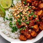 - Garnish and Serve: Garnish the Thai Peanut Chicken with chopped peanuts, fresh cilantro, and sesame seeds if desired. Serve hot over cooked rice or noodles to complete this flavorful meal.